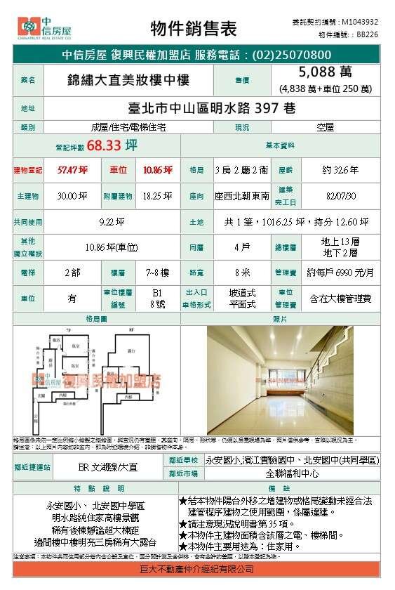 買屋賣屋請指名 中信房屋復興民權加盟店【巨大不動產仲介經紀有限公司】