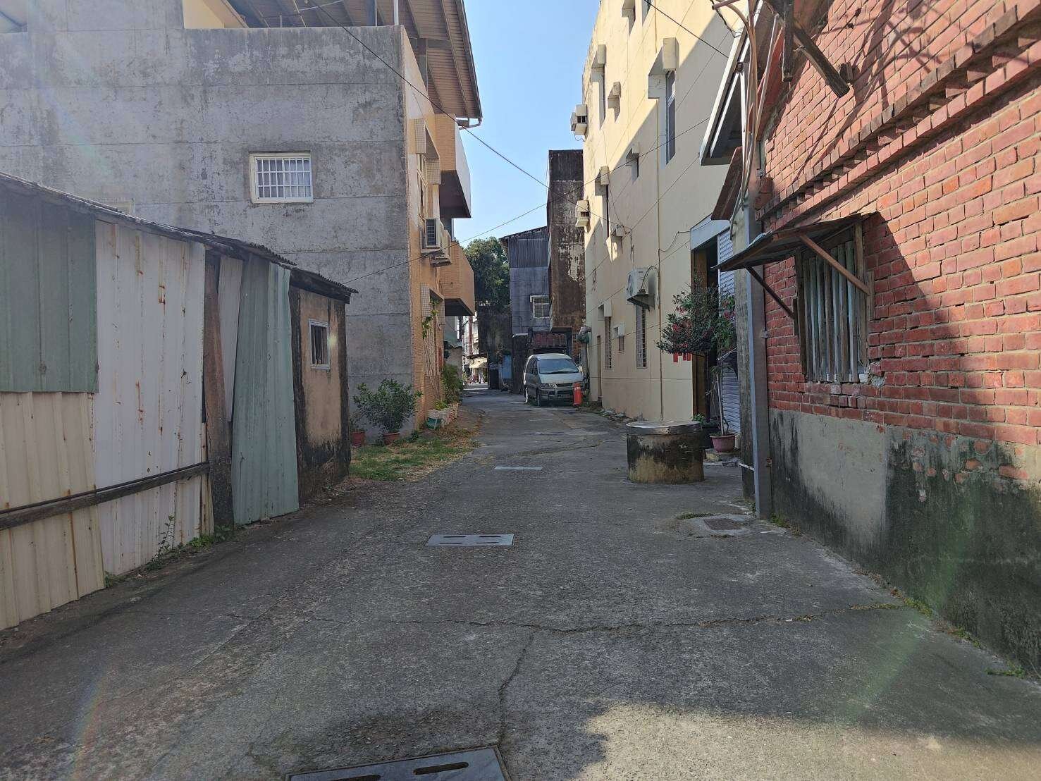 地形方正,臨8米未開闢計畫道路,目前可出入約2米。 未辦保存登記建物(鐵皮屋) 地號450、328為道路用地