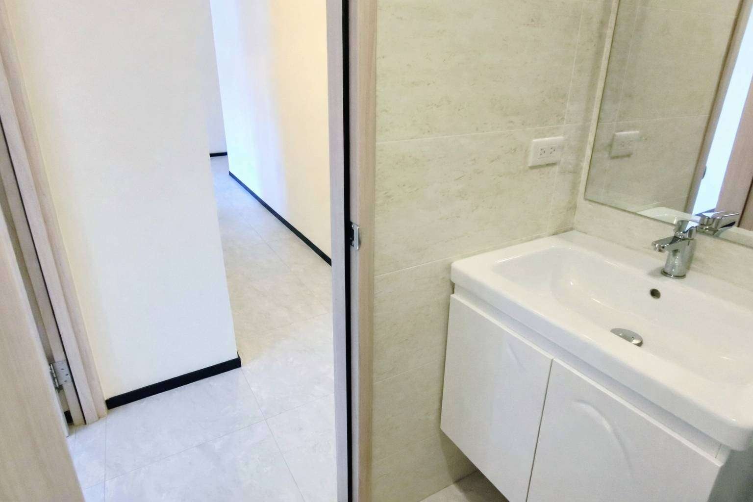 2房+專屬車位 快速電梯到達 精美客廳 吧台式廚具用起來便利輕鬆,主臥和客廳配備分離式冷氣 床主 衣櫥 大陽台輕鬆洗衣曬衣
