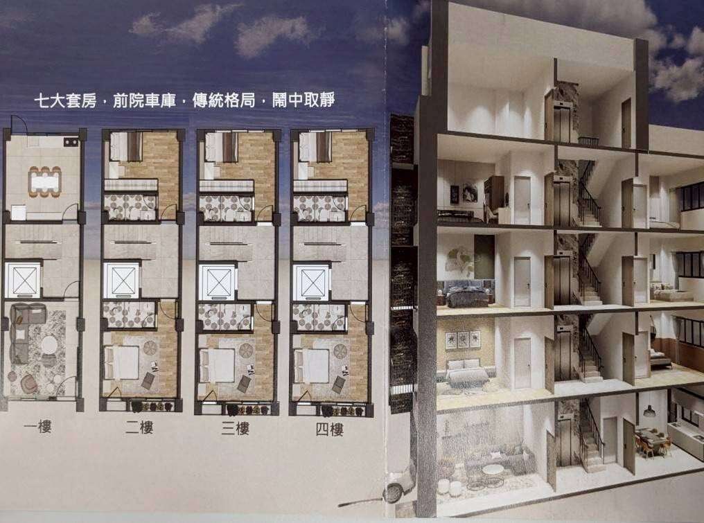 前置車庫好停車 電梯別墅全新未住 間間套房即將完工 空間大好規劃,使用空間約76坪 東森房屋 南屯好市多加盟店 壯壯不動產有限公司(112) 中市經紀字第10801號