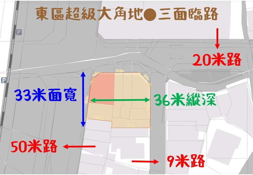 🍎面寬33米、深度36米,三面臨路、地形方正好規劃
