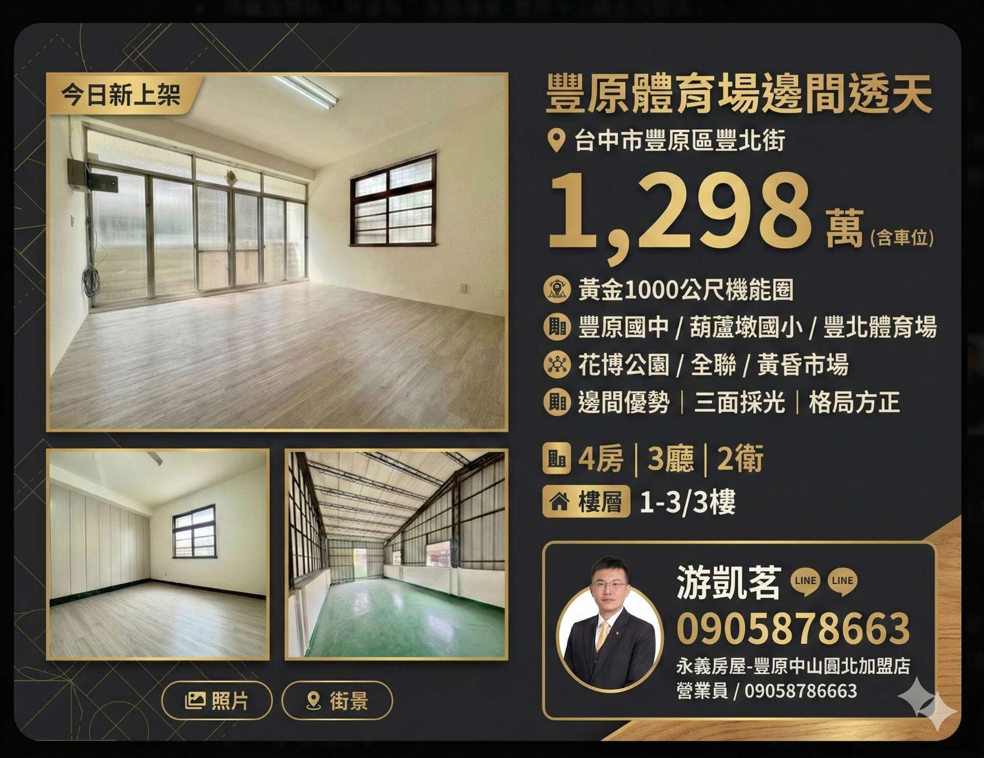 黃金1000公尺機能圈 豐原國中 × 葫蘆墩國小 × 豐北體育場 × 花博公園 × 全聯 × 黃昏市場 邊間優勢|三面採光 格局方正|一樓可隔孝親房 學區在旁,九年免煩惱 公園在側,生活更從容 自住保值一次到位 這戶條件,市場少有