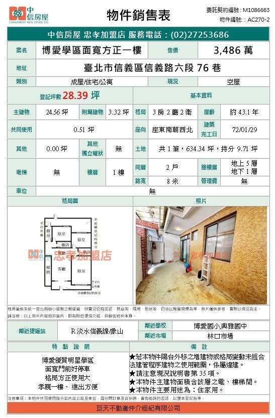 買屋賣屋請指名 中信房屋復興民權加盟店【巨大不動產仲介經紀有限公司】