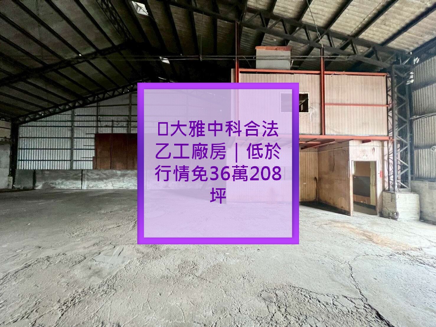 🔥大雅中科民生路稀有合法乙種工業廠房|低於行情單坪免36萬|地坪208坪面寬16米