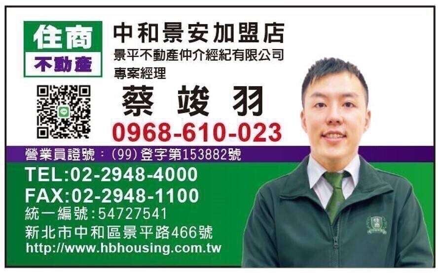 住商不動產 中和景安加盟店景平不動產仲介經紀有限公司經紀人:鐘家茵(89)北市經證字第00145號