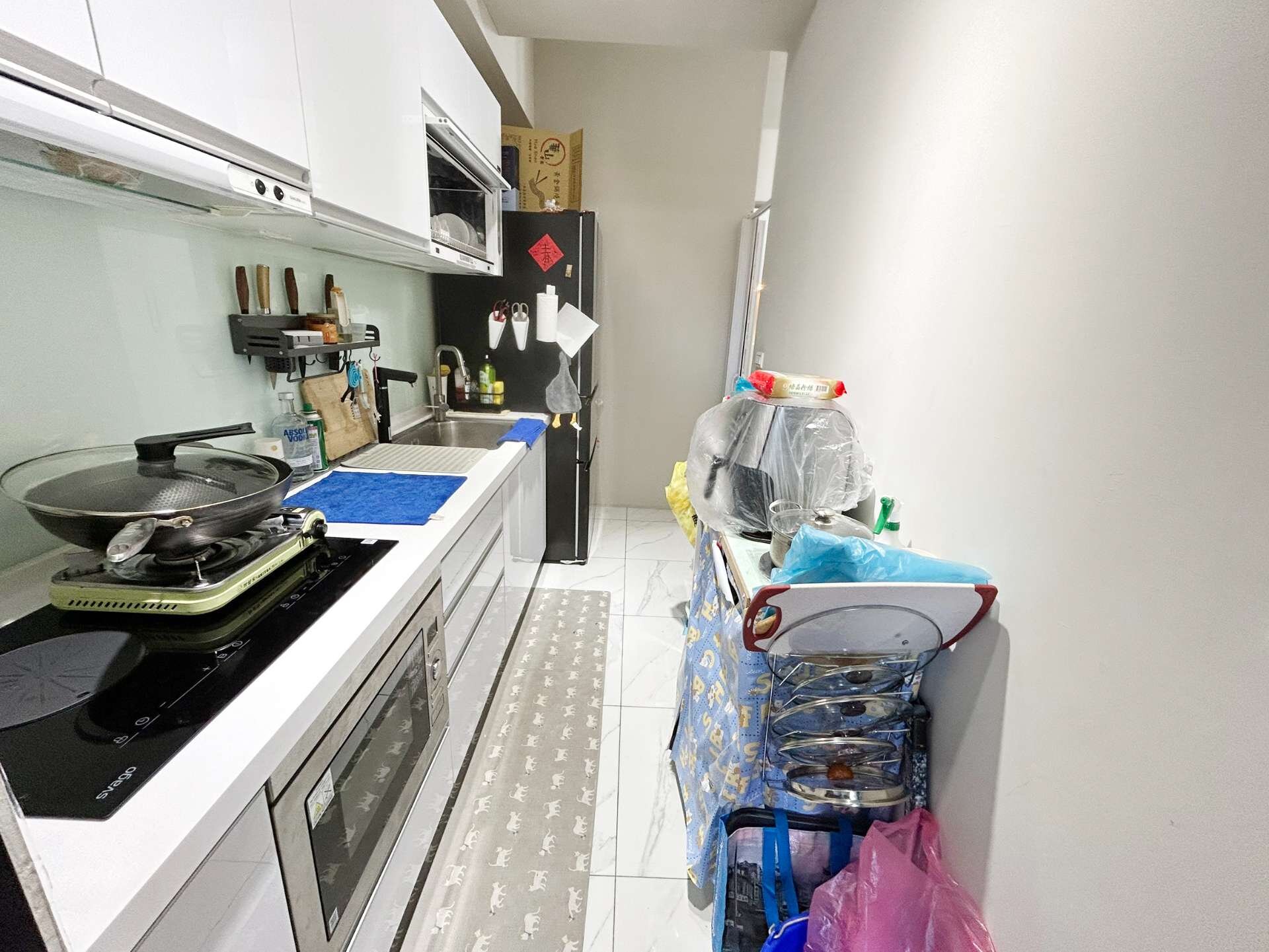 ❄廚房搭配IH電子爐,銜接工作陽台對外通風,油煙不會影響公共空間較小。