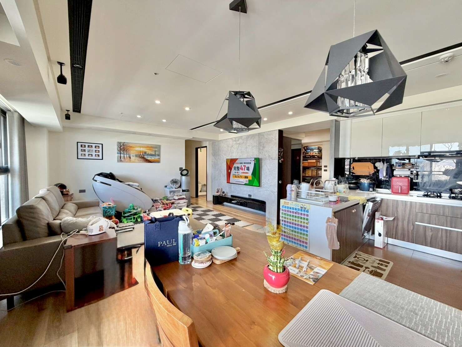 5️⃣房屋介紹:入門玄關旁即有儲藏室可放置小孩及寵物外出用品,開放式廚房與客餐廳一體,除了營造大空間感,還可以煮飯同時兼