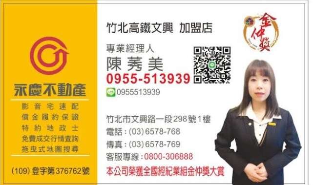 🙋♂️♂️永慶不動產高鐵文興加盟店(聚合發開發有限公司)經紀人證號(101)竹市字第00018號