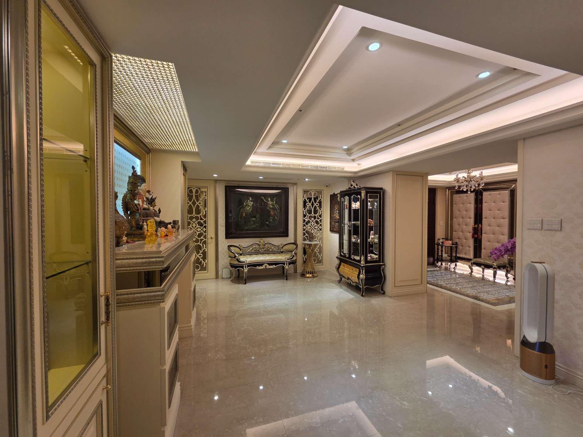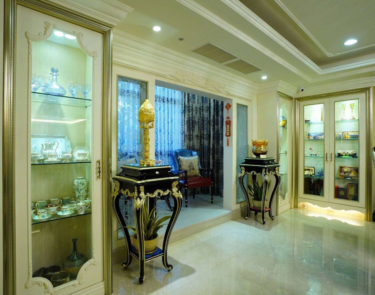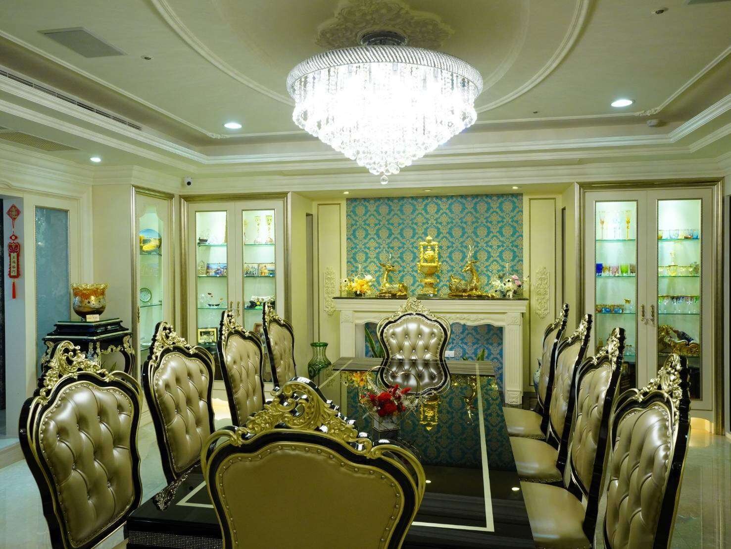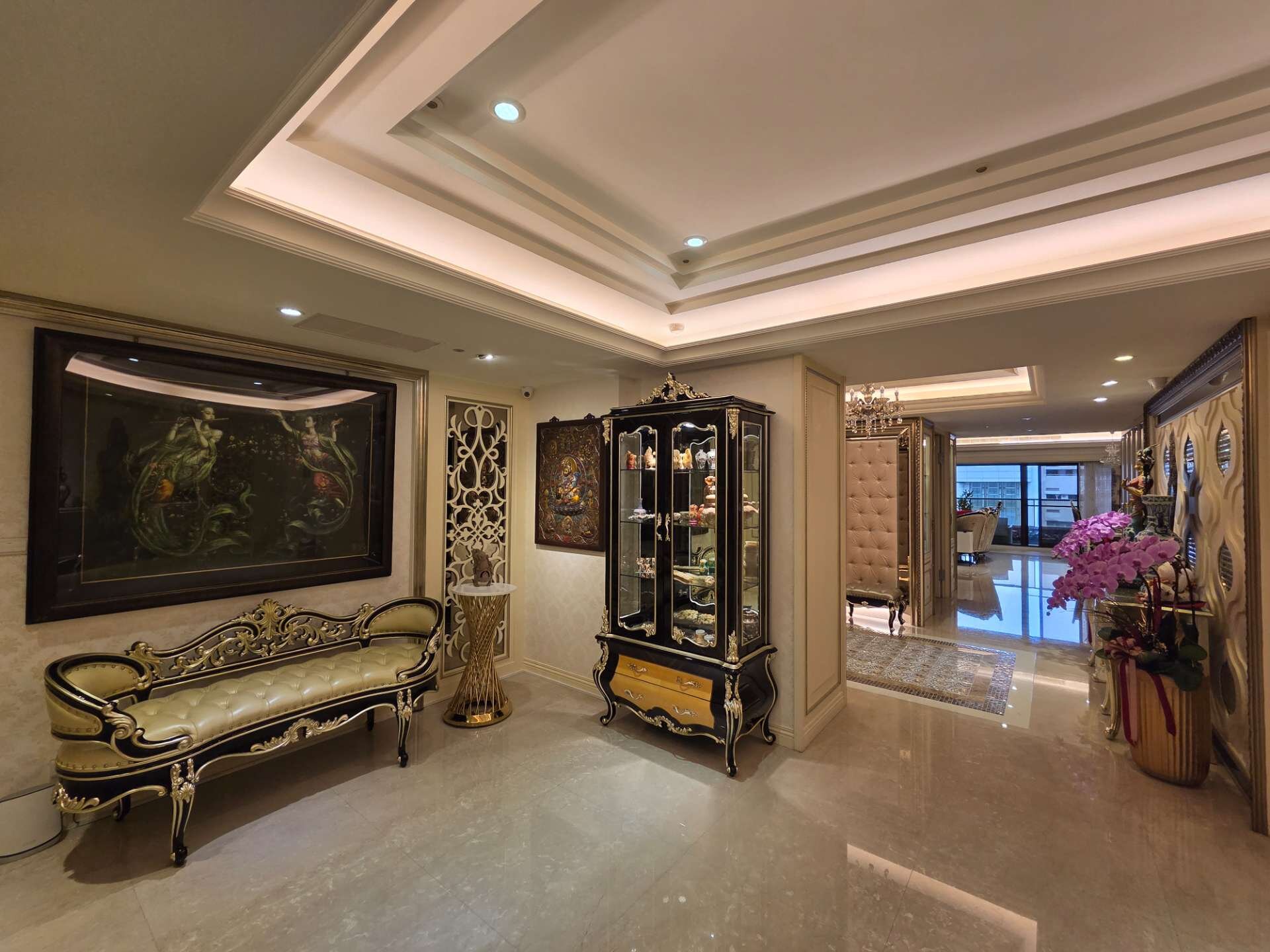 因此,整個屋內像是一間博物館,滿滿的收藏來自各國的藝術古董文物,這些古董藝術品大多是達到策展水準甚至是富士比等級的精品;所有的傢俱擺設也都是屋主夫婦精心考究,特別挑選定製精雕細琢、華美絢麗的宮廷風傢俱擺飾、充滿歐洲文化深厚底蘊的搭配,處處可見屋主夫婦的生活美學及藝術講究,初次見面,屋主夫婦就花了3個小時娓娓道來,所有的珍藏與配置的沿革,真的是大開眼界⋯平常都是作為收藏古董文物藝術品的展覽空間及招待所,來接待各國好友及重要人士!