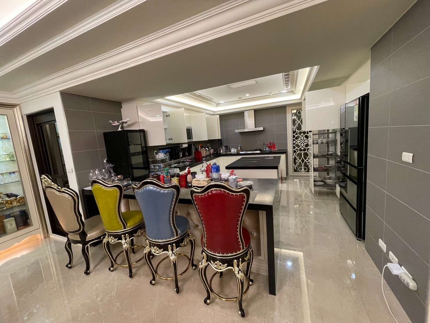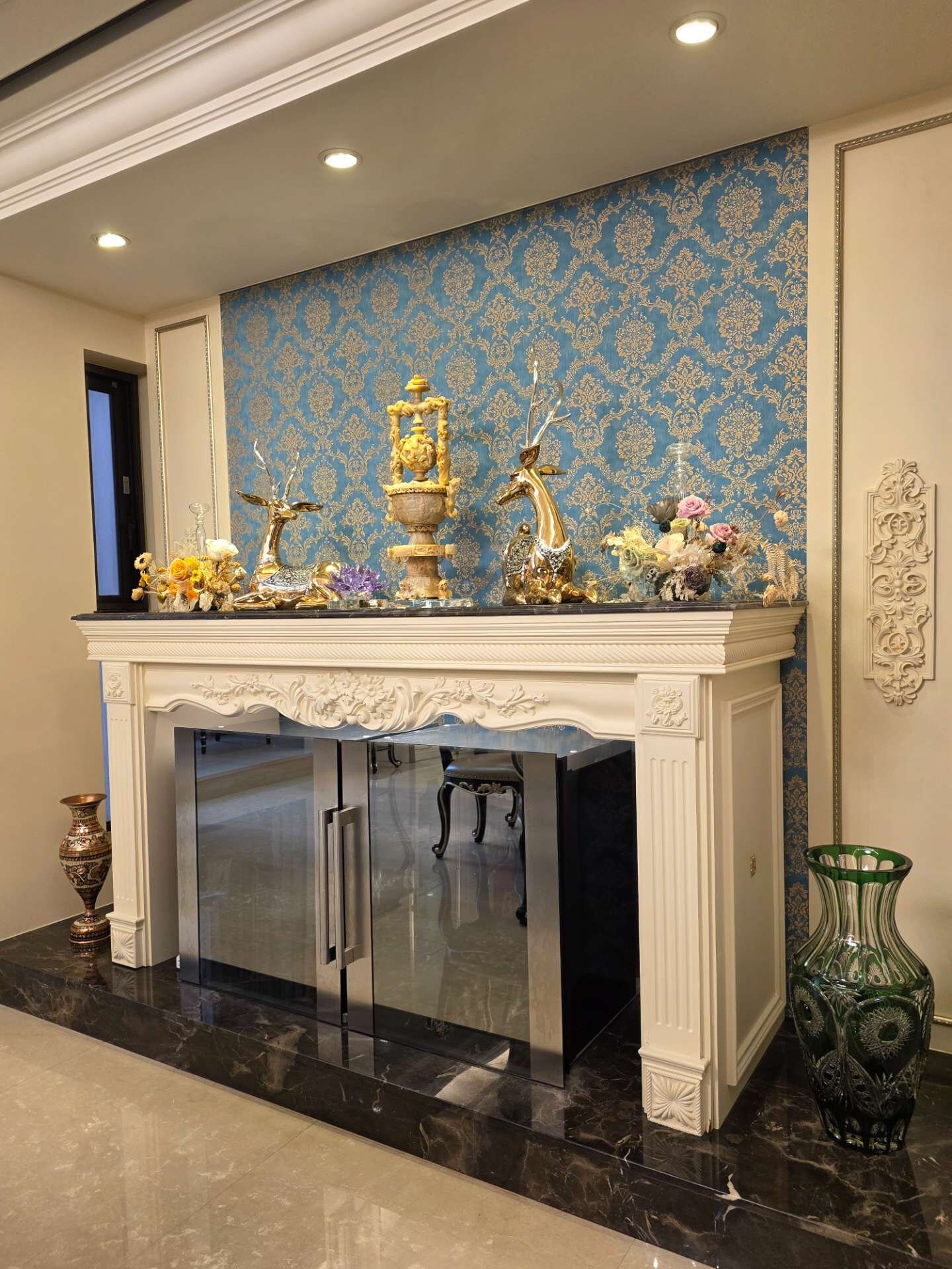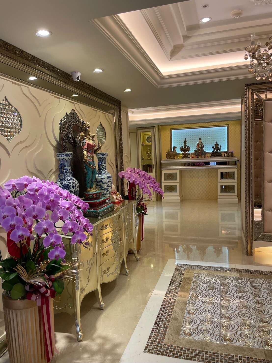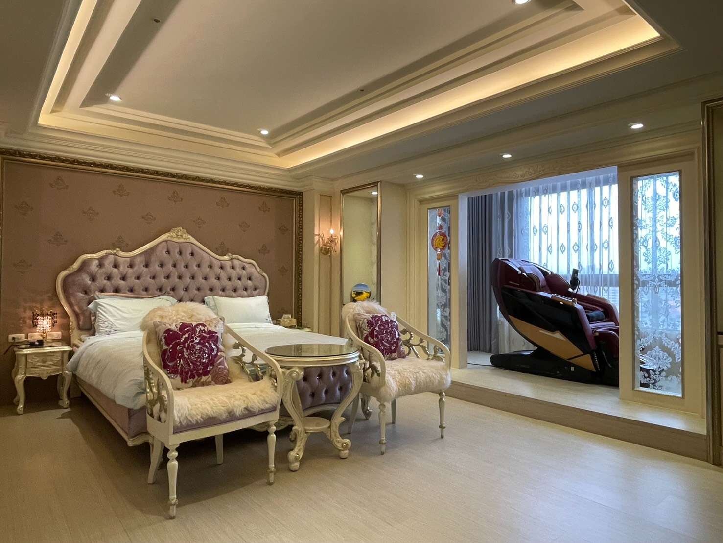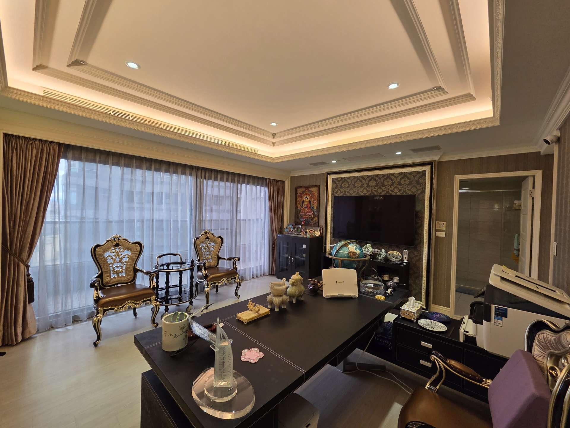 因此,整個屋內像是一間博物館,滿滿的收藏來自各國的藝術古董文物,這些古董藝術品大多是達到策展水準甚至是富士比等級的精品;所有的傢俱擺設也都是屋主夫婦精心考究,特別挑選定製精雕細琢、華美絢麗的宮廷風傢俱擺飾、充滿歐洲文化深厚底蘊的搭配,處處可見屋主夫婦的生活美學及藝術講究,初次見面,屋主夫婦就花了3個小時娓娓道來,所有的珍藏與配置的沿革,真的是大開眼界⋯平常都是作為收藏古董文物藝術品的展覽空間及招待所,來接待各國好友及重要人士!