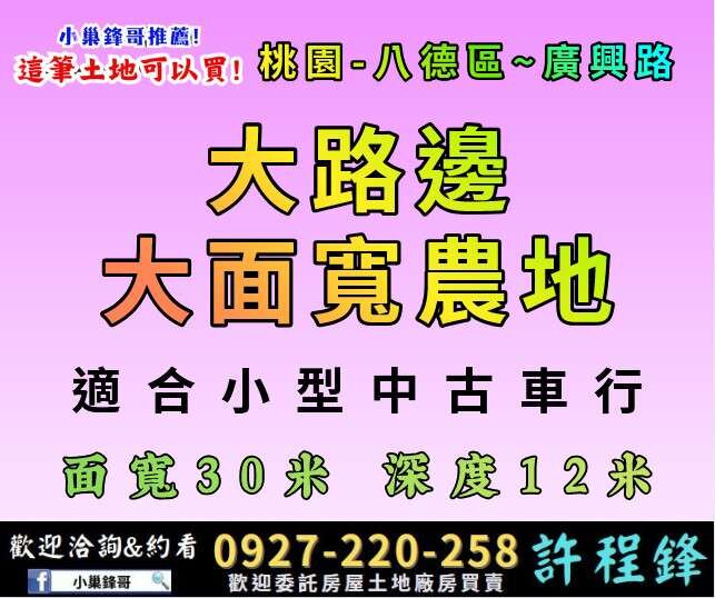 #八德農地 #廣興路農地 #中古車行用地 #大面寬土地 #桃園投資土地 #車行首選 #八德不動產 #臨路農地 #收租置產