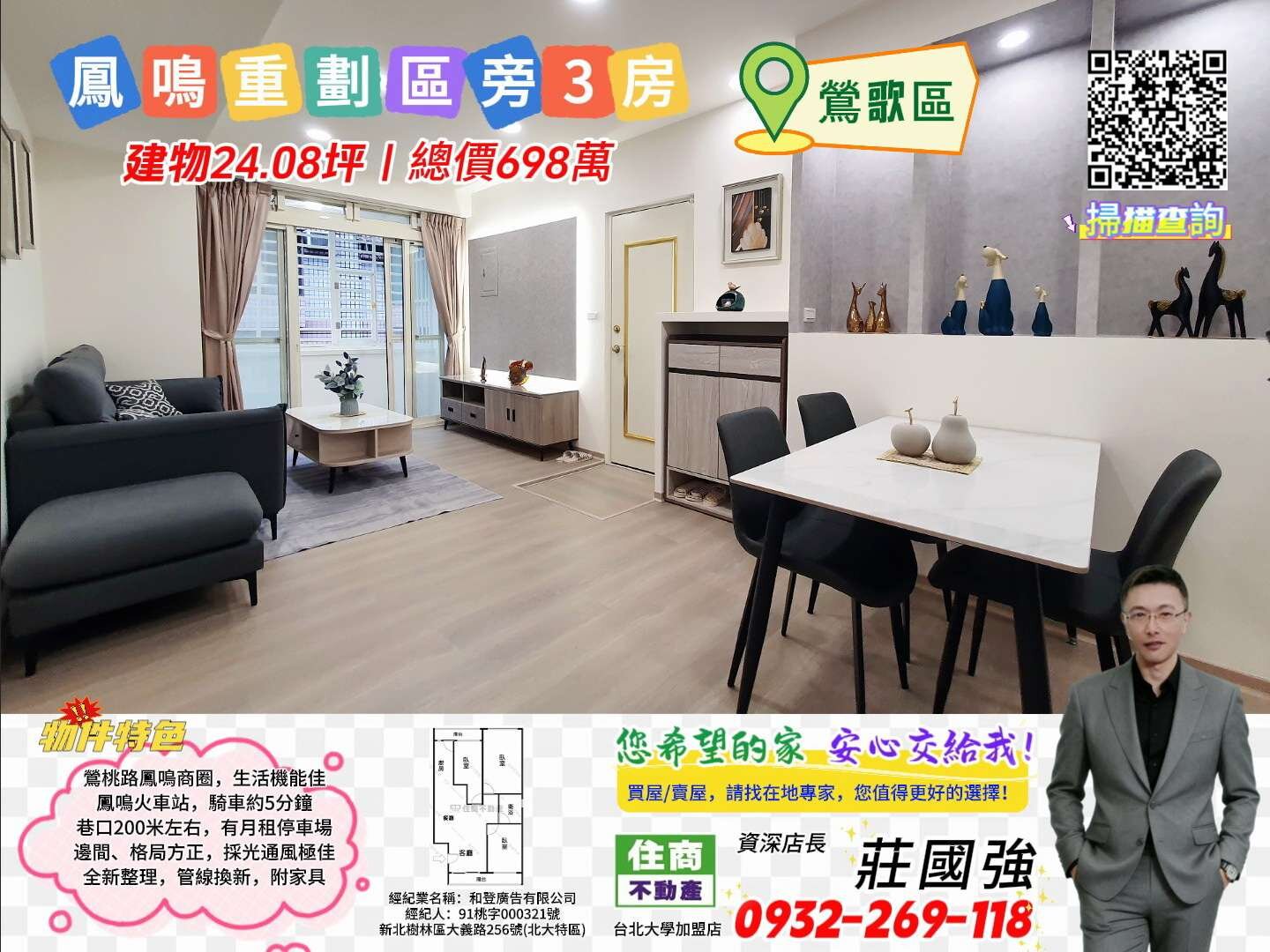 鳳鳴重劃區旁買4樓送5樓|資深店長-莊國強推薦