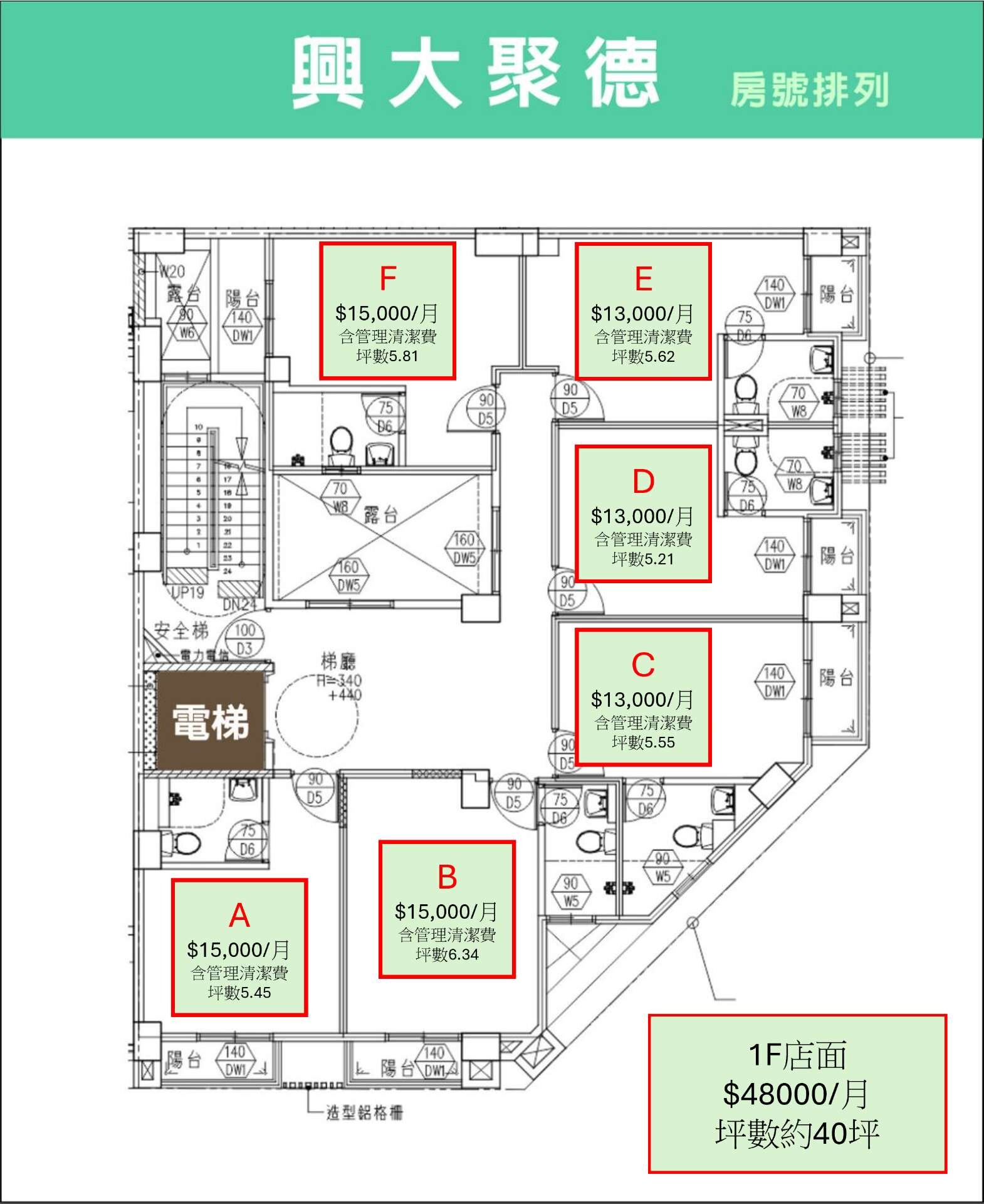 1、中興大學特區,明德中學學區,稀有電梯角間透店+24套房 2、臨25米路vs10米路,面寬約14米,深度約13米 3、一樓店面,二樓-五樓共24間套房,高質感裝潢,附家電傢俱 4、隔間牆18CM,RC造加強隔音,筏式基礎 5、24間套房獨洗獨曬,衛浴開窗 6、一樓店面租金4.8萬元(目前空屋),二樓到五樓共24間套房,月租共32.8萬6、整棟租金如滿租月收37.6萬,年收451.2萬