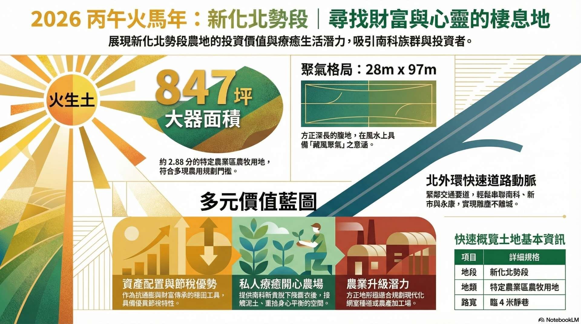 位置: 新化北勢段,近北外環快速道路,快速串聯南科、永康。