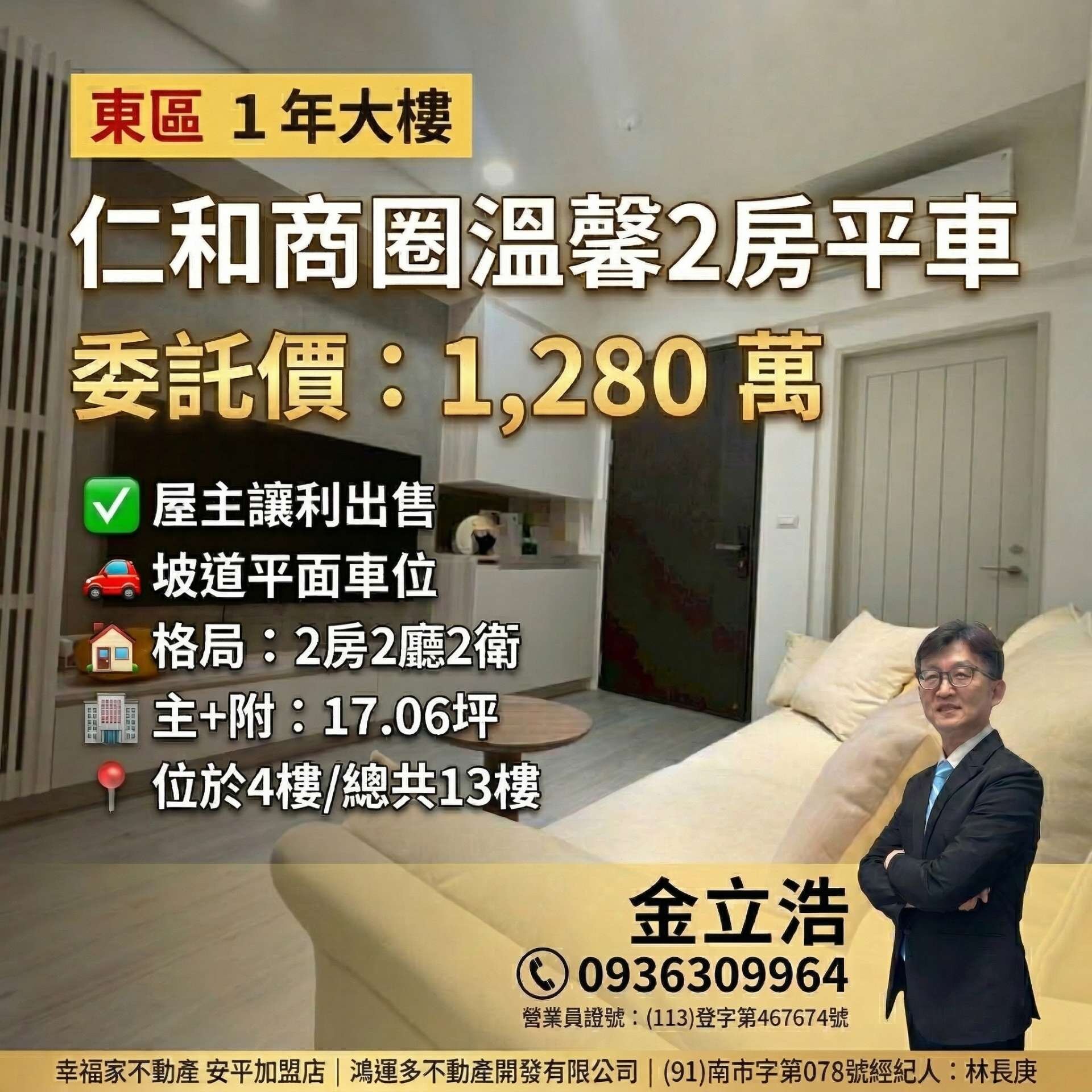 1. 格局方正,通風佳,地段佳。 2. 溫馨兩房,暖心輕裝潢,成家首選。 3. 近仁德交流道,交通樞紐。 <<<更多物件,歡迎參考我的FB社團:台南屋託邦>>>