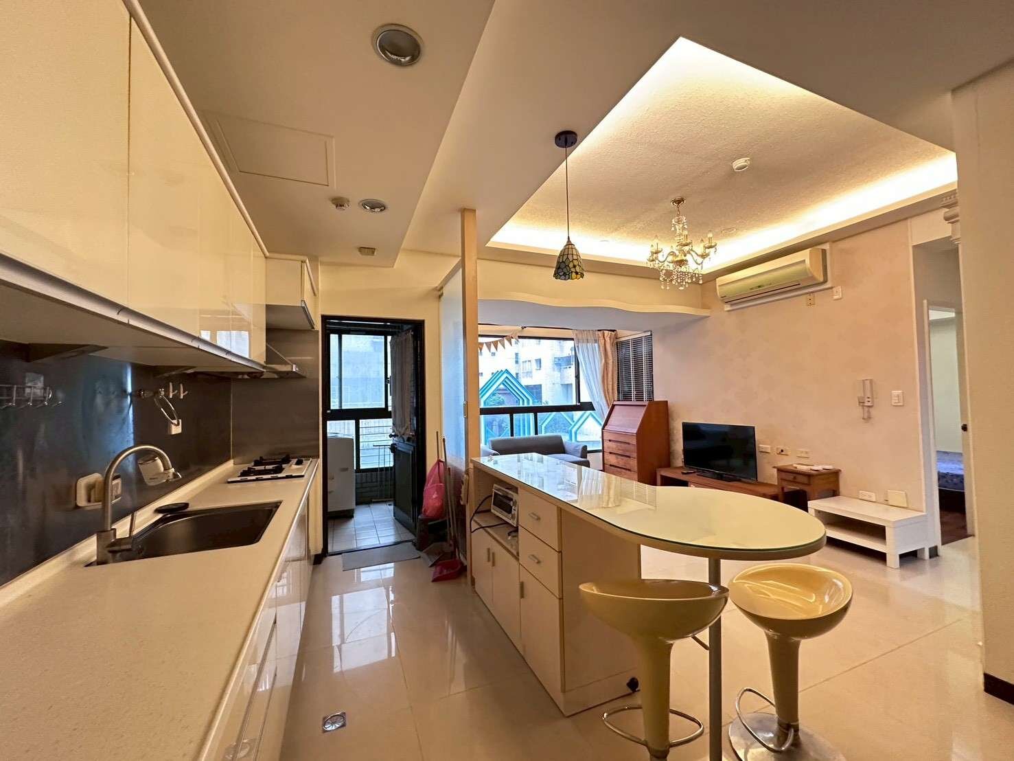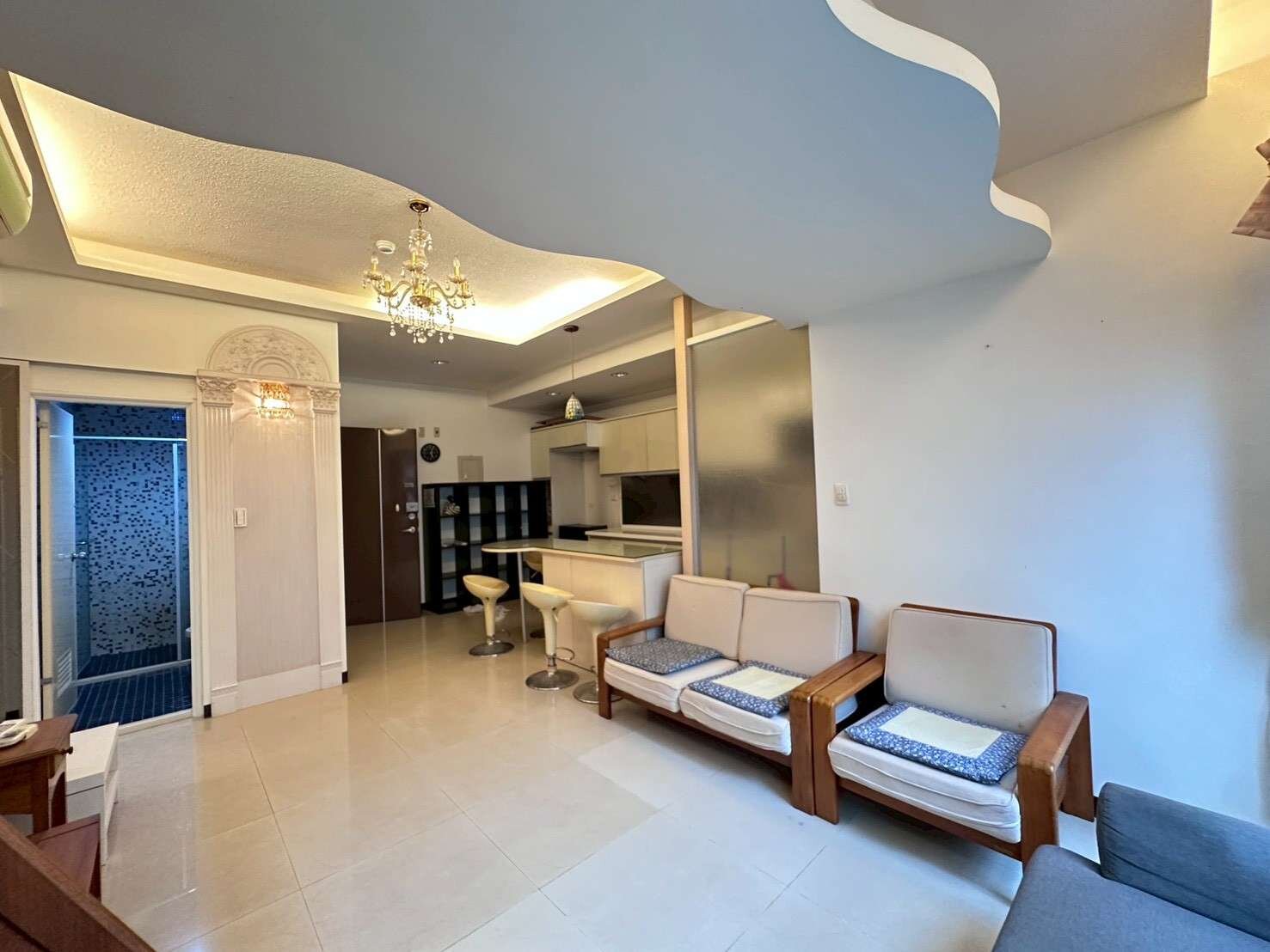 二樓非管線轉折處,客廳寬敞,大片落地窗