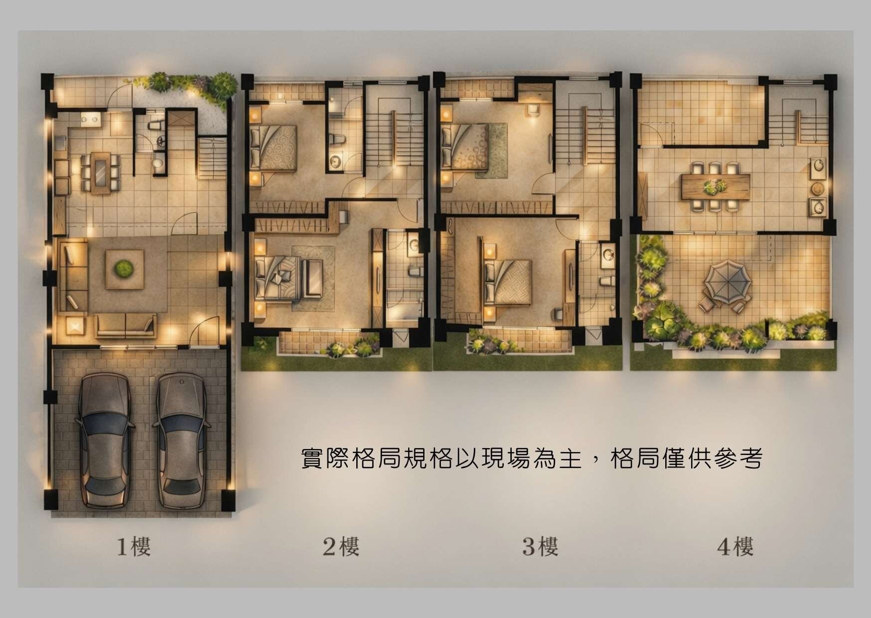 ✦"3.面寬 7 米 8 大尺度,併排雙車庫規劃,車位好進出,門面氣勢完整,彰顯大戶格局。