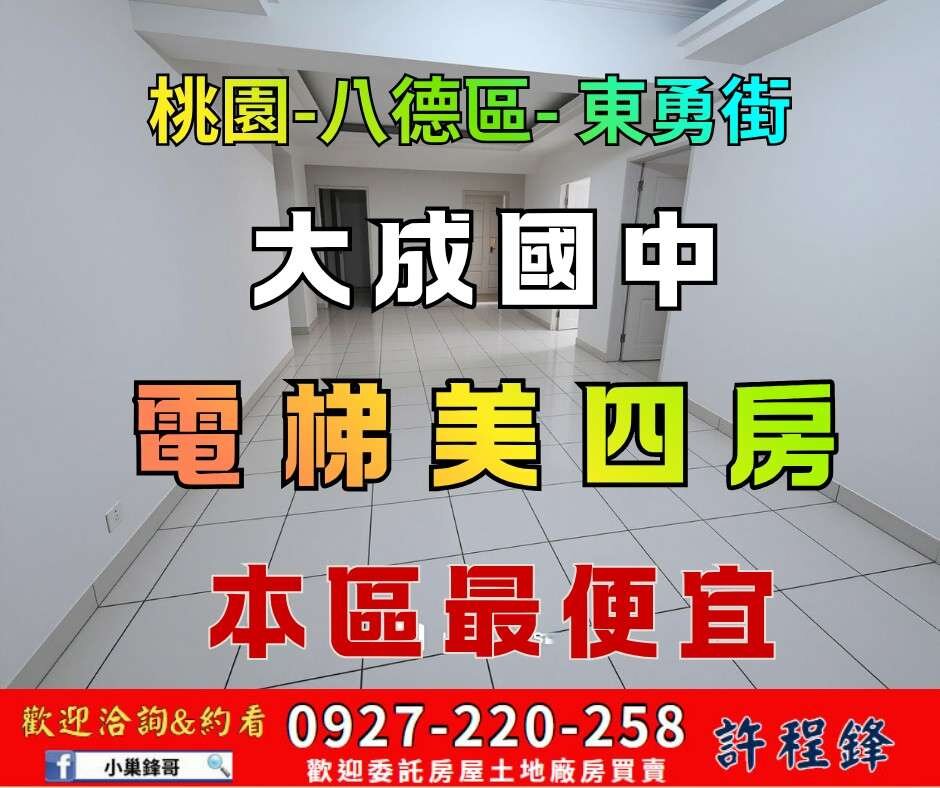 #八德買屋 #大湳買屋 #大成國中 #大忠國小 #桃園八德房地產 #電梯四房 #邊間採光 #義勇商圈 #大湳轉運站 #低公設比 #首換首選 #小巢鋒哥 #有巢氏房屋八德 #台北萬寶鎮