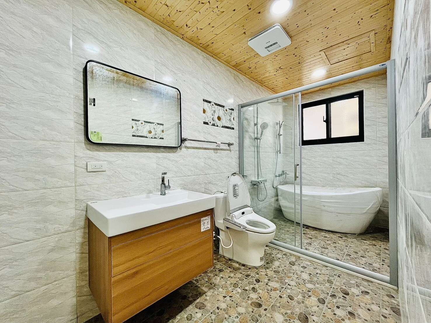 近舊社國小、大魯閣、湳雅商圈全新整理電梯別墅 新增電梯,全棟電線水管ヽ衛浴ヽ地板皆大翻新 3、4、5樓皆為增建 共6房3廳5衛 ,衛浴皆有開窗 設有車庫,以及孝親房 重金打造 近百坪空間