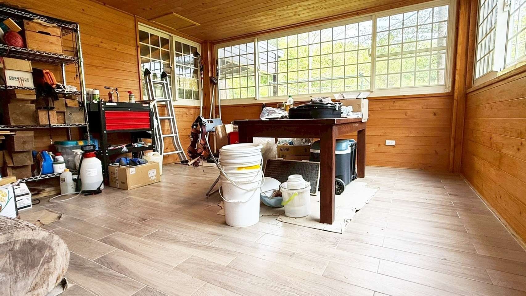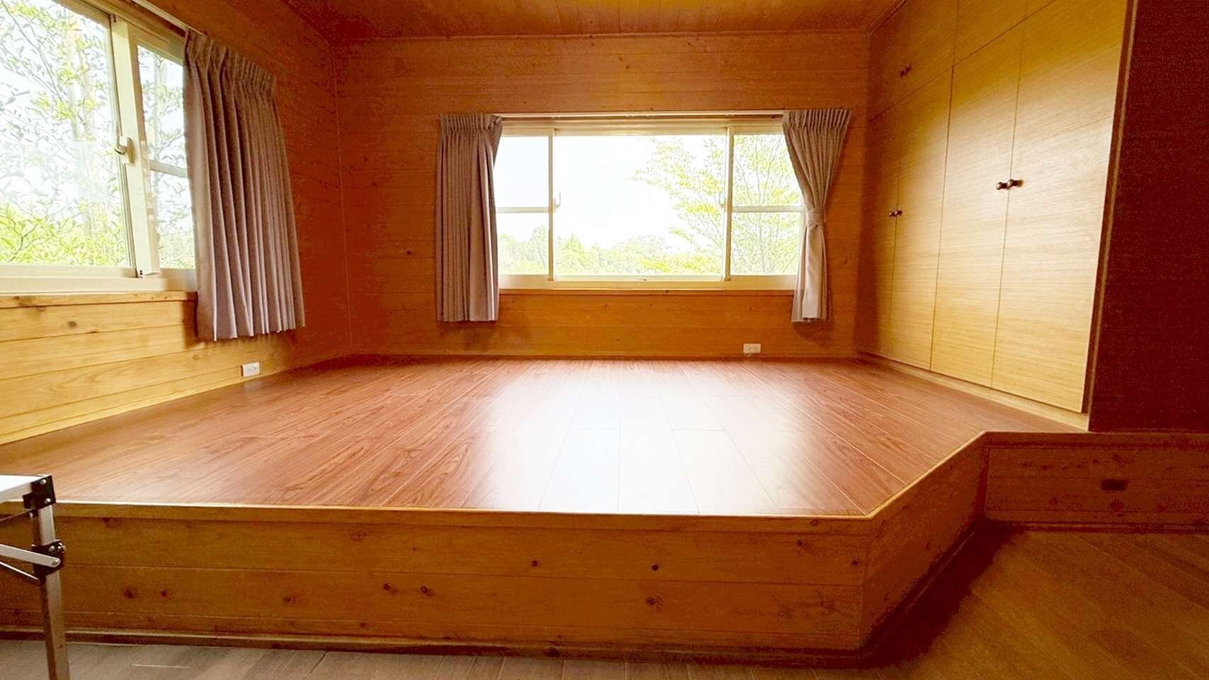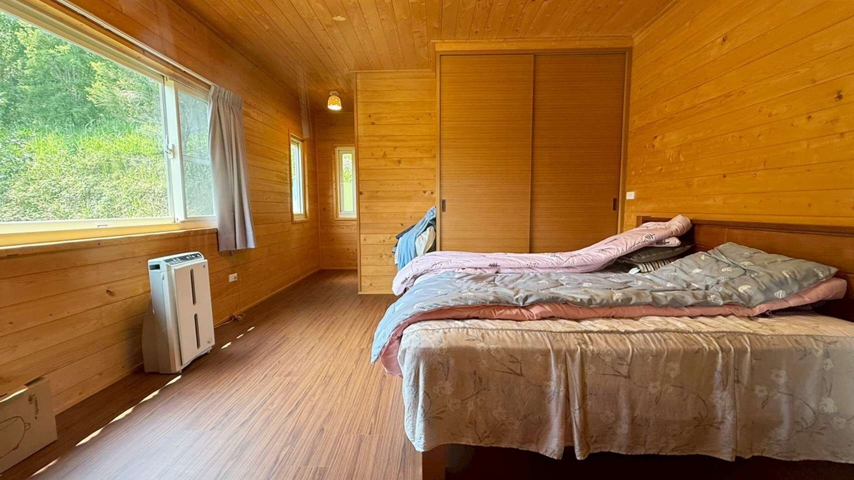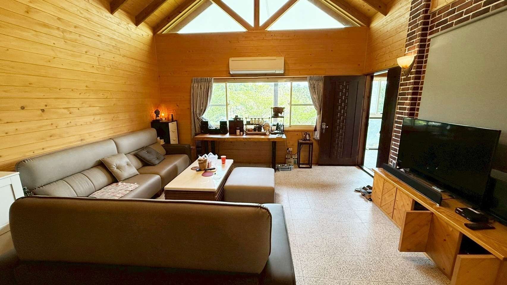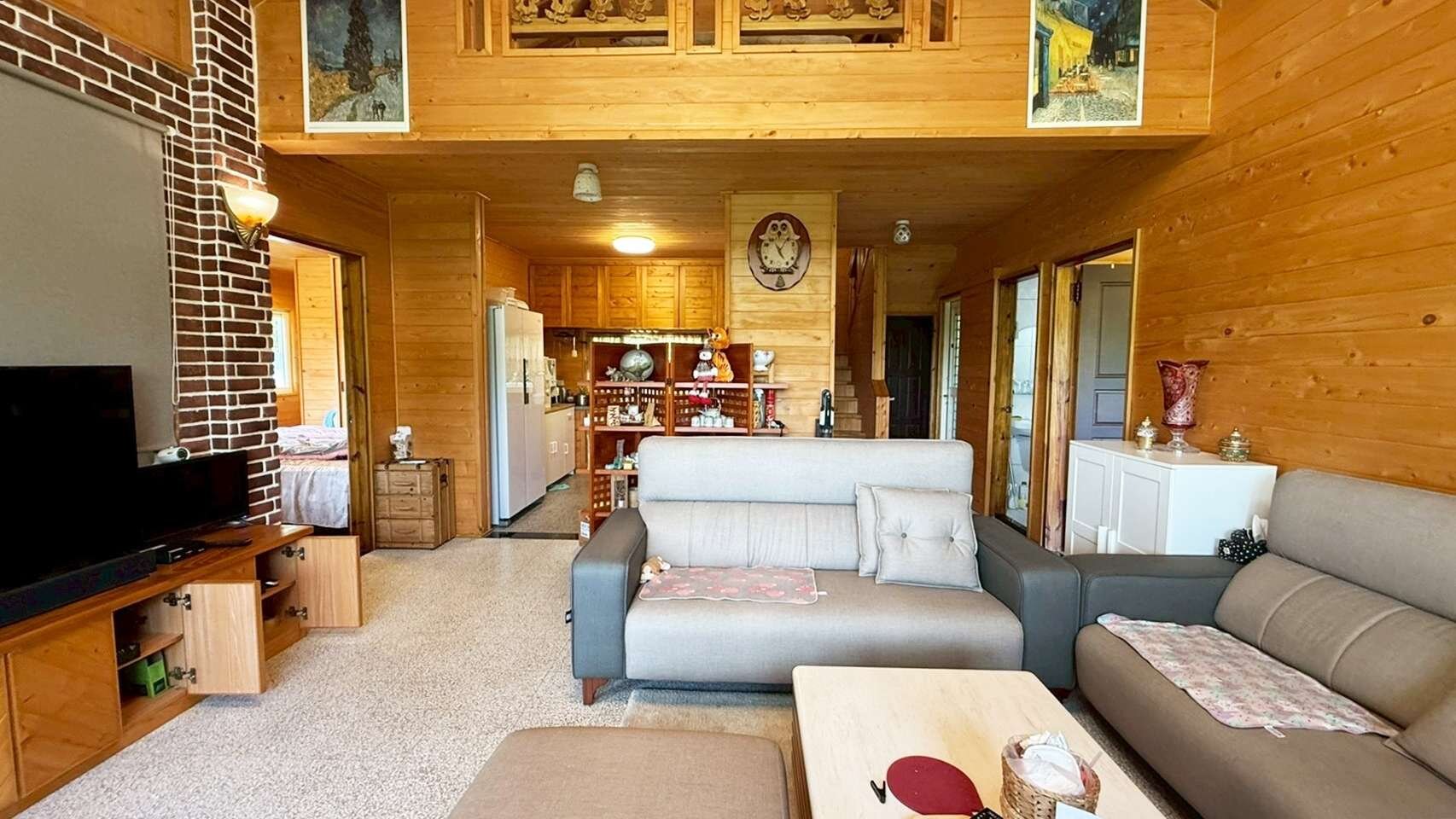 房/3衛浴/1大前露台、1小後陽臺,木屋的外牆為馬克板,內牆為日