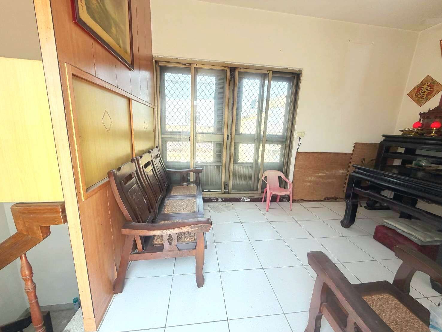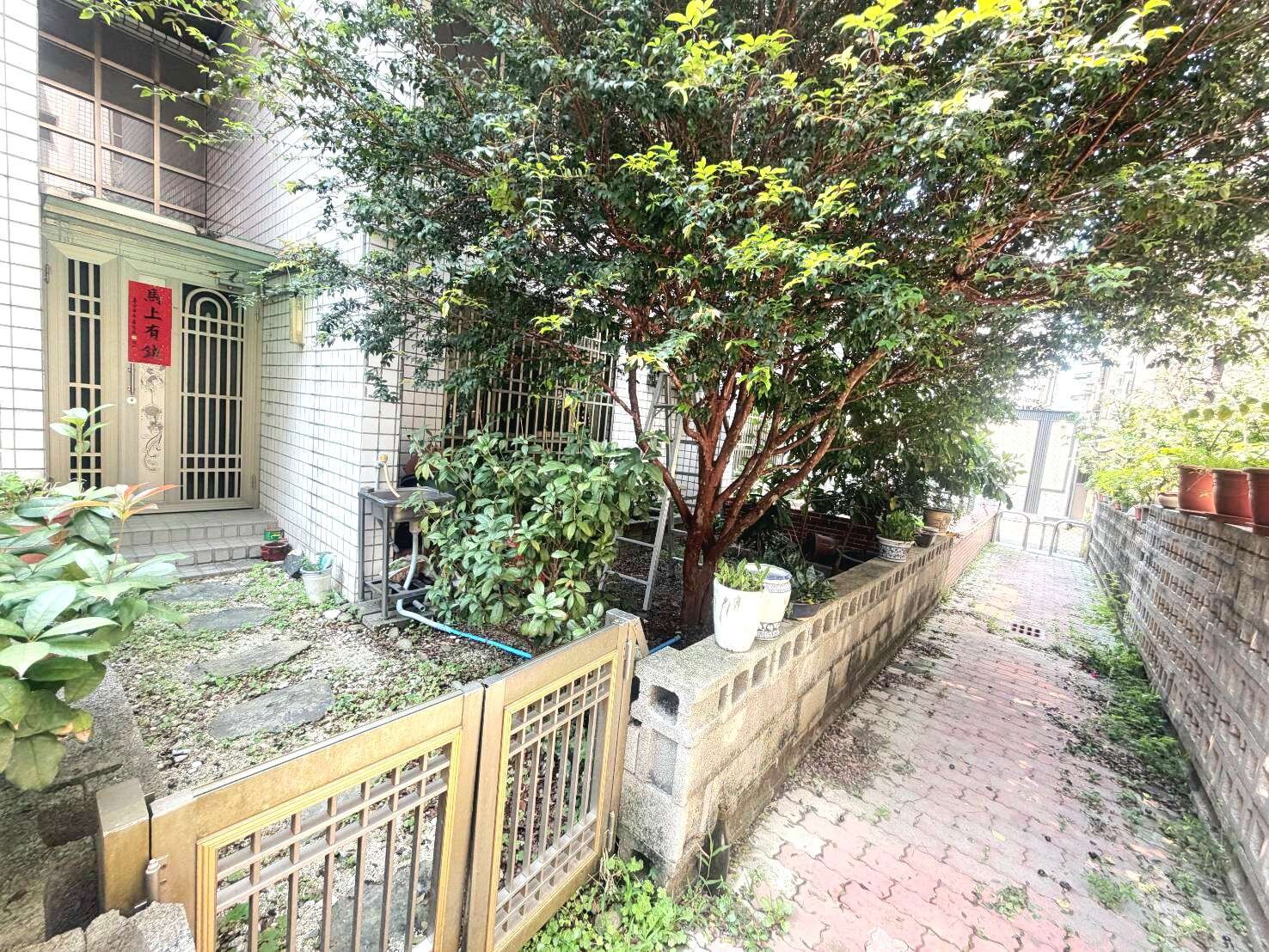 🩵一樓挑高客廳,前院綠意盎然目前種果樹,入門玄關,後院停雙車庫,進出入方便。