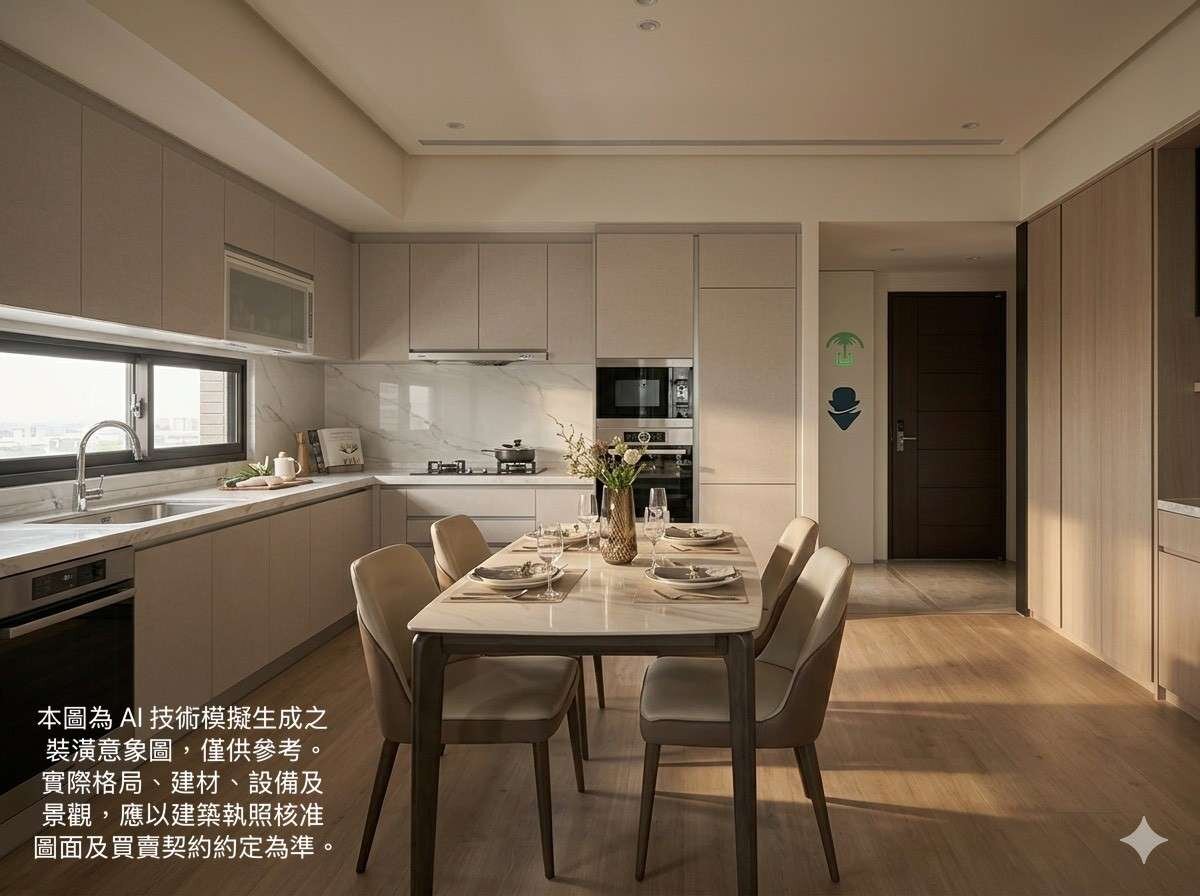 🌲全室太格木地板、四合一電子鎖、甲種鑄鋁鋼木防暴防火門、氣密防霾紗窗阻擋PM2.5、BWT濾水器、櫻花三機明火瓦斯爐