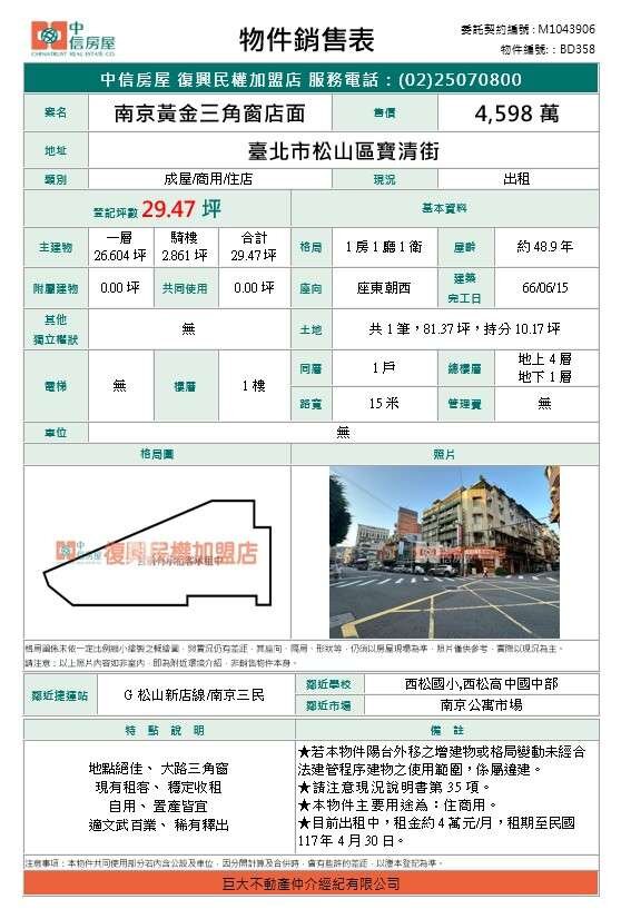 買屋賣屋請指名 中信房屋復興民權加盟店【巨大不動產仲介經紀有限公司】